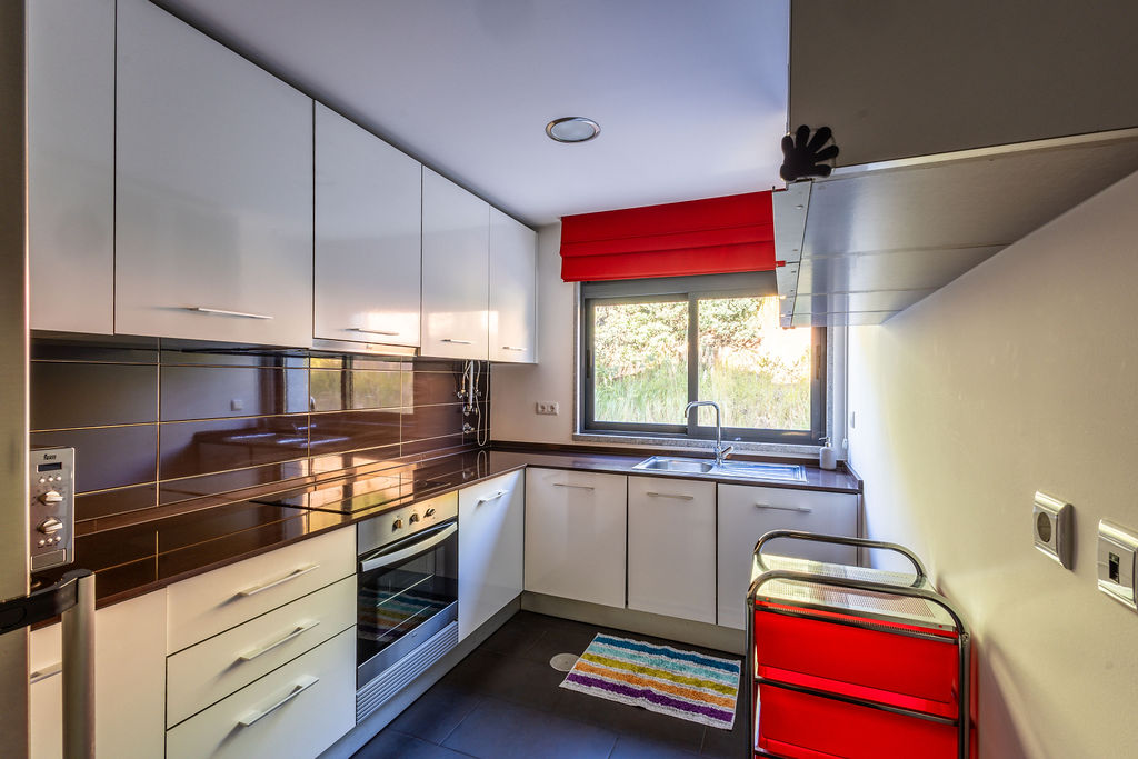 A cozinha está totalmente equipada com máquina de lavar roupa, máquina de lavar louça, frigorífico, fogão, forno e micro-ondas, tornando o dia a dia mais prático. O apartamento, construído em 2013, encontra-se em bom estado e é aarendado mobilado conforme as fotos, pronto para o receber.